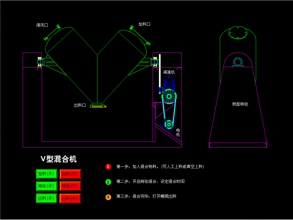 V型和W型高效混合機是國際上較為通用的粉末、顆粒狀混合機。它具有結構簡單,容易操作,維護清洗方便,速度快,混合效果佳等特點。廣泛采用于:制藥,化工,食品,陶瓷等行業,是一種理想的混合設備。混合時沒有機械擠壓和強烈磨損,能保持物料顆粒完整。桶體內外拋光,均設計成圓滑過渡,無死角,可避免物料交叉污染,料口配用蝶閥,下料方便。